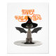Happy Halloween text can be customised by you. A cartoon cat with wings and a witch's hat.