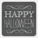 Rustic and cute Happy Halloween typography stickers with a trendy white text on a faux black chalkboard background. Cool labels to use on party favours and treats.