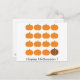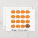 A cute patch of festive orange pumpkins are joined by a happy little holiday jack o' lantern at the end of the line. Happy Halloween!