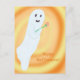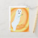 Awesome friendly ghost presenting a rose on a yellow and orange swirl background, with Happy Halloween in orange, is printed on custom postcards. Thank you for shopping at CherylsArt on Zazzle.