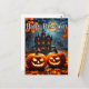 This super unique postcard features a haunted house guarded by glowing Halloween jack 'o lanterns. Please feel free to edit all the available options to make this holiday greeting truly one-of-a-kind.