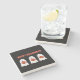 The coasters are gorgeous, a quality feel and heavy weight. They look like a precious archeological find. A rustic stone juxtaposed with a modern floral black and white print. I like the way the print goes slightly imperfect on the cut stone edges giving them a kind-of natural beauty.