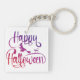 Happy Halloween gradient flying witch cat Key Ring