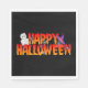 Fun Halloween paper napkin featuring a graphic with the words "Happy Halloween" and images of a mummy, spiders, spiderwebs and a witch's hat which is perfect for a Halloween party.