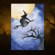 Wonderful watercolor and sketch style Happy Halloween card. Flying black witch, big golden moon and spooky old tree. Inside message can be changed: "Witching" You A Happy Halloween". Design work also included inside the card. Spooky fun!