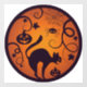 Happy Halloween circle badge with jack-o'-lantern black cat and bats typography