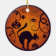 Happy Halloween lantern black cat spiders and bats Ceramic Ornament