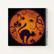Happy Halloween circle badge with jack-o'-lantern black cat and bats typography