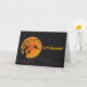 Black background with dead tree, sitting in the tree is a spooky owl! Under the tree are Halloween pumpkins! A witch flying on her broomstick highlights this spooky card that is great for a Halloween party invitation! Happy Halloween text can be edited! Text or photographs can be added to the inside of card! Pick up matching postage!
