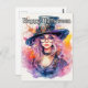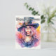 This super vibrant postcard features an illustration of a knowledgeable witch. This postcard would make a truly delightful Halloween greeting for best of friends and family.