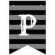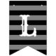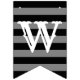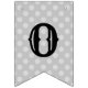 This festive "Happy Halloween!" holiday bunting banner features orange, gray, black, and white colors, patterned stripes and polka dots, decorative text, and a smiling jack-o-lantern pumpkin accent.