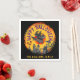 Celebrate Halloween with friends and family as you offer food and refreshments with these cool "Happy Halloween" paper napkins. These napkins for Halloween party feature a witch flying on a broomstick with a scary castle below against a black and orange background. Text in purple says "HAPPY HALLOWEEN". Personalise below with the name of your choice.
