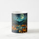 Enjoy your favourite drink in this Happy Halloween orange pumpkin mug featuring glowing pumpkins under a spooky starlit sky. With witches flying across the bright full moon and eerie forest trees, it captures the magic and mystery of Halloween nights. Perfect for coffee, tea, or cocoa, and an ideal autumn gift for Halloween lovers, witchcore fans, and gothic home decor collectors. Made from premium ceramic for lasting quality and vibrant print.