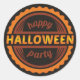 Happy Halloween Party sticker. It has gold typography printed on black background. Perfect finishing touch for sealing your greeting cards, invitations or closing paper trick or treat bags. You can attach with a ribbon to a bottle of wine. You can change the text to suit your needs.