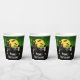 This fun and spooky paper cup features cute Frankenstein monsters beside a crooked haunted house. In the background is a full moon with bats and a green night sky with stars. This is perfect for Halloween.