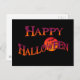 Happy Halloween greeting with a spectral bat flying across a full October Moon.