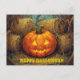 An illustration of a carved pumpkin with a scary face amongst corn stalks and hay bales. #generativecontent