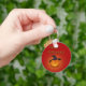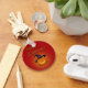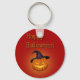 Halloween pumpkin with a witch hat and "Happy Halloween" written with bones on a red background.