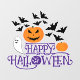 Happy Halloween pumpkins ghost bats purple text