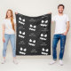 Happy Halloween Scary Pumpkin Ghost Face Fleece Blanket, Black and White Halloween colour scheme, feature design scary spooky Pumpkin Halloween face and Happy Halloween wording.