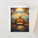 Happy Halloween Sinister Glowing Pumpkin In Autumn Postcard