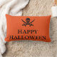 Happy Halloween Skull with her Broom Orange Throw Lumbar Cushion