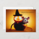happy Halloween. Small cute mouse with pumpkin Postcard
