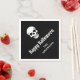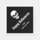 Halloween napkins featuring a skull and the text: "Happy Halloween" in a gothic style font with your name or other custom text below on a black or custom colour background.