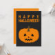 A flat Halloween card with a pumpkin and a 'Happy Halloween' text on black. Customise the black and the orange background colours among other options.