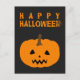 A Halloween postcard with a pumpkin and a 'Happy Halloween' text on black. Customise the black background colour among other options.