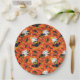 Happy Halloween paper plate featuring a smiling vampire bat on a full moon.