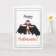 Card with my artwork of a cute vampire trying to look scary, with customisable text "Happy Halloween". Customisable verse inside.