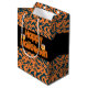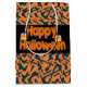 Black & orange gift bags featuring cartoon style text, & candy corn witches.