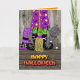 Happy Halloween Whimsical Witch, Broom and Cat Holiday Card