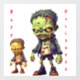 Father and son zombies are on this window cling for Halloween with bones coming out of their faces