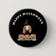 Happy Halloween Scary witch Button. It is Orange and black Happy Halloween with a screeching black cat can be customised to add names, text, or sayings. Click "customise it" to add yours. It is great for fun Halloween gifts and treats!