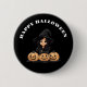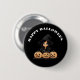 Happy Halloween Scary witch Button. It is Orange and black Happy Halloween with a screeching black cat can be customised to add names, text, or sayings. Click "customise it" to add yours. It is great for fun Halloween gifts and treats!