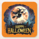 Happy Halloween - Witch on flying Broom Square Paper Coaster