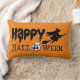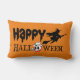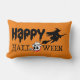 Happy Halloween Witch with her Broom Orange Throw Lumbar Cushion