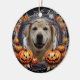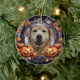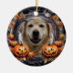 Happy Halloween Wreath With Pumpkins Custom Photo Ceramic Ornament - Personalised Pet Keepsake, Halloween Gift