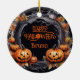 Happy Halloween Wreath With Pumpkins Custom Photo Ceramic Ornament