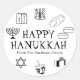 Happy Hanukkah black white custom name gift favour Classic Round Sticker