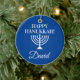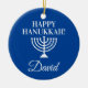 Happy Hanukkah blue menorah custom Jewish Holiday Ceramic Ornament