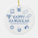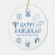 Happy Hanukkah blue white custom name favours Ceramic Ornament