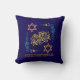 Stylish HAPPY HANUKKAH Chanukah Throw Pillow, with CUSTOMIZABLE TEXT, especially designed with the Star of David, corner embroidery and descriptive typography. The Scripture verse at the bottom is CUSTOMIZABLE so you can add your personalised message, eg. your name, family name or organisation's name. This Hanukkah Throw Pillow would be a stylish home decor gift to celebrate Chanukah season. Matching gifts and party supplies available.