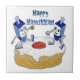 Happy Hanukkah Dancing Dreidels Jelly Doughnut Ceramic Tile
