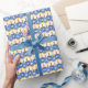 Celebrate Hanukkah with this Happy Hanukkah wrapping paper, featuring a charming blue pattern with dreidels, each adorned with a letter spelling out "Happy Hanukkah." The playful design adds a personal and festive touch to your gifts, making them extra special for the holiday. Perfect for spreading joy and cheer with a touch of tradition and modern style.