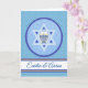 Happy Hanukkah, for a couple. Add names to the cover of this Hanukkah greeting card for a custom look. Digital illustration with a menorah, tiled pattern, and the Star of David. Art, image, and verse copyright © Shoaff Ballanger Studios, 2024.