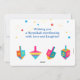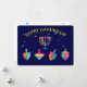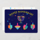 Happy Hanukkah Beautiful Jewish Holiday Greeting Card / Invitation. Jewish Holiday Hanukkah Vintage Jerusalem gold frame, navy blue background with traditional Chanukah symbols - Gold Menorah, Hanukkiah Candelabrum and Candles, wooden dreidels (spinning top), donuts, star of David and glowing lights wallpaper pattern. Hanukkah Festival Decoration. Jerusalem, Israel. Invitations & Stationery > Greeting Cards > Holiday & Seasonal Cards > Hanukkah Cards beautiful card with two sides graphic decoration. Card Design with custom text template. Minimalist, Modern design. Personalize them by adding or change invitation text. (Perfect for Family Event, Friends, Kids Festival, Classroom, Letter from Teacher, School Party)
