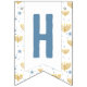 Personalise this blue and gold Happy Hanukkah typography bunting banner with any word or phrase 16 letters or fewer. The steel blue lettering and menorah and Star of David pattern combined with hand-drawn typography gives it a hand-made vibe. Phrases that fit nicely with one space at beginning and end include "Happy Birthday," "Under the Seas," and "Celebrate Love." "Merry Everything" and "Believe in Magic" are exactly 16 characters. For blanks / spaces, use ALT + 7 {numeric keypad} for a round dot / bullet.